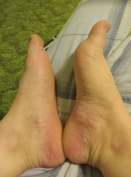 حبيت نوريكم الحالة إلي وصلتلها ساقي بسبب كثرة الوقوف, كنت ديما لابس فرّاشات عاديين في صبابطي .. ملّي طحت بالفرّاشات متاعكم نسيت الوجيعة إلّي عذبتني و ولّيت نحس روحي عبارة لابس صباط بالقطن .. برافو و يعطيكم الصحّة